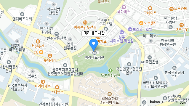 주소 및 전화번호 안내 주소 : (우 26464) 강원특별자치도 원주시 양지로 46 (반곡동) 미리내도서관 전화번호 대표전화: 033-737-2828 일반자료실: 033-737-2868 어린이자료실: 033-737-2898 FAX : 033-737-4851