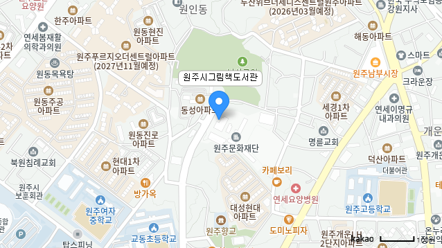 주소 및 전화번호 안내 주소 : 강원특별자치도 원주시 향교길 77(명륜동) 그림책도서관 전화번호 처음자료실: 033-737-4696/4697 모두자료실: 033-737-4698/4699 FAX : 033-737-4842
